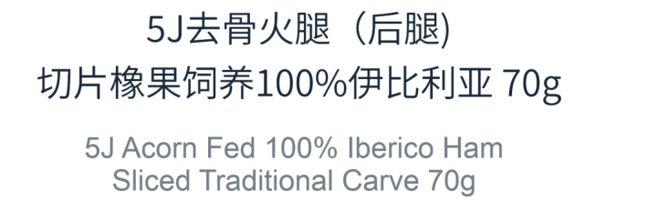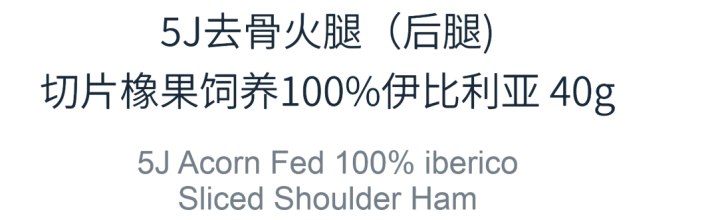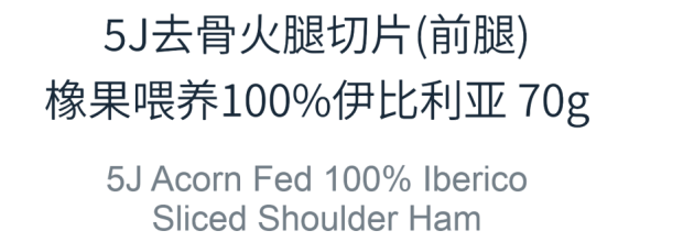 5J去骨火腿切片(前腿) 橡果喂养100%伊比利亚 70g 5J Acorn Fed 100% iberico Sliced Shoulder Ham